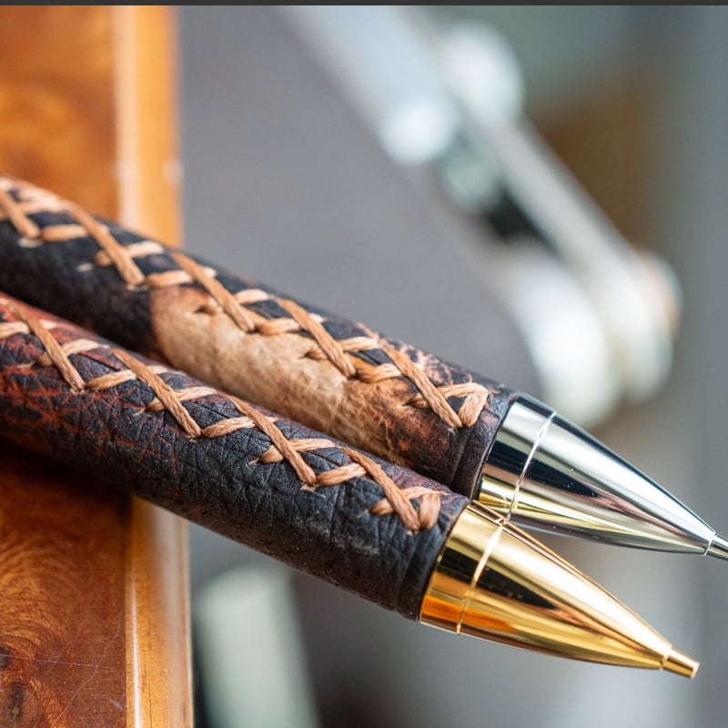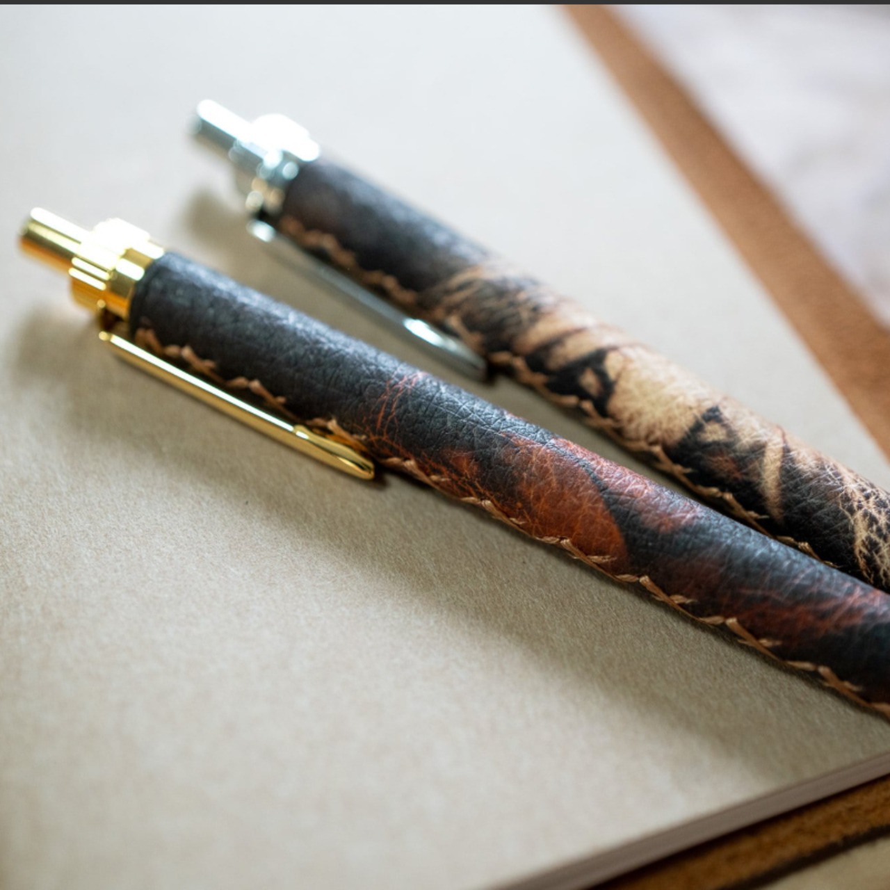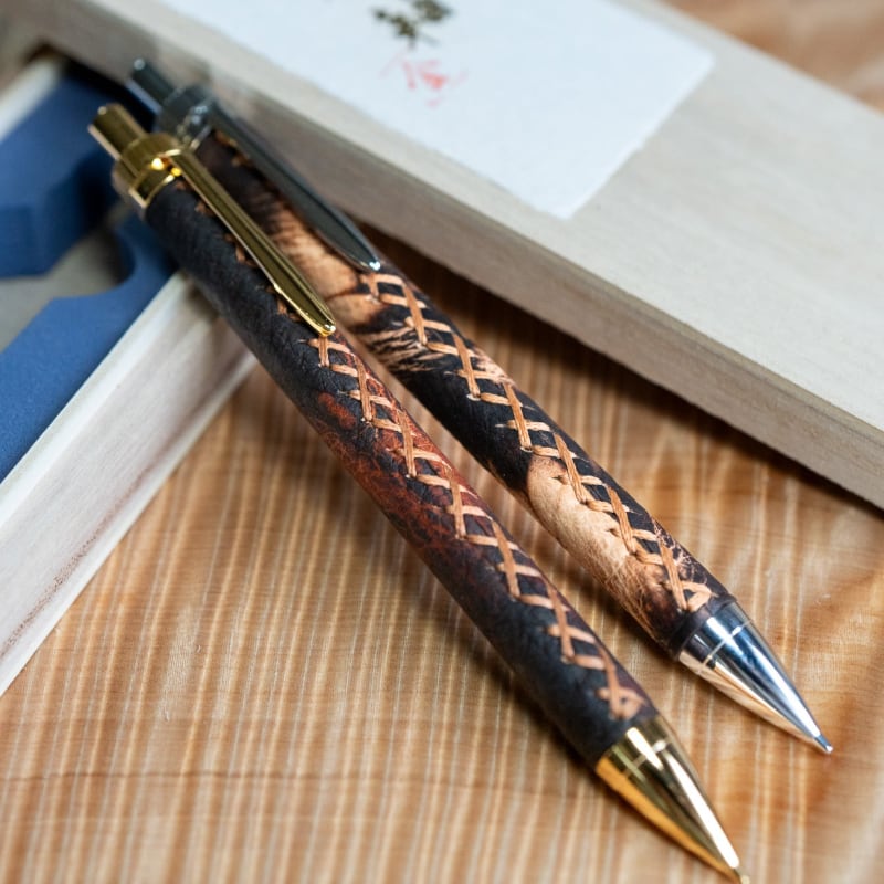 奄美大島・泥染めレザー 手縫い 革軸ペン