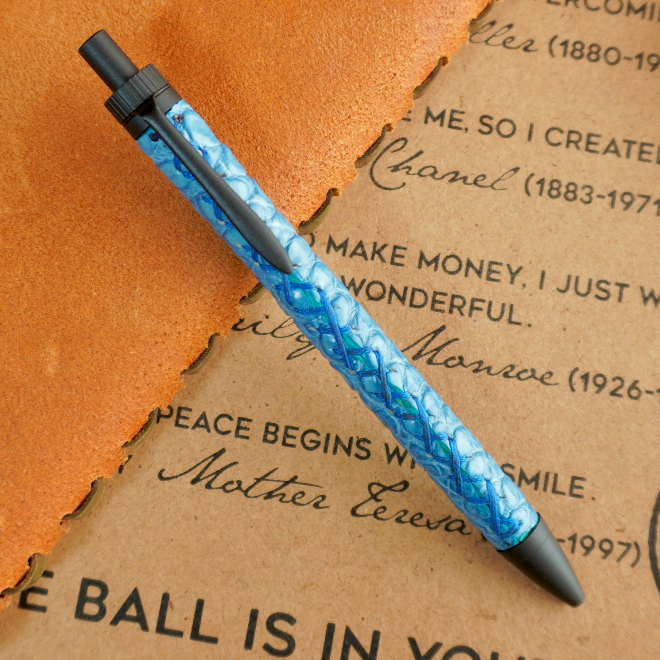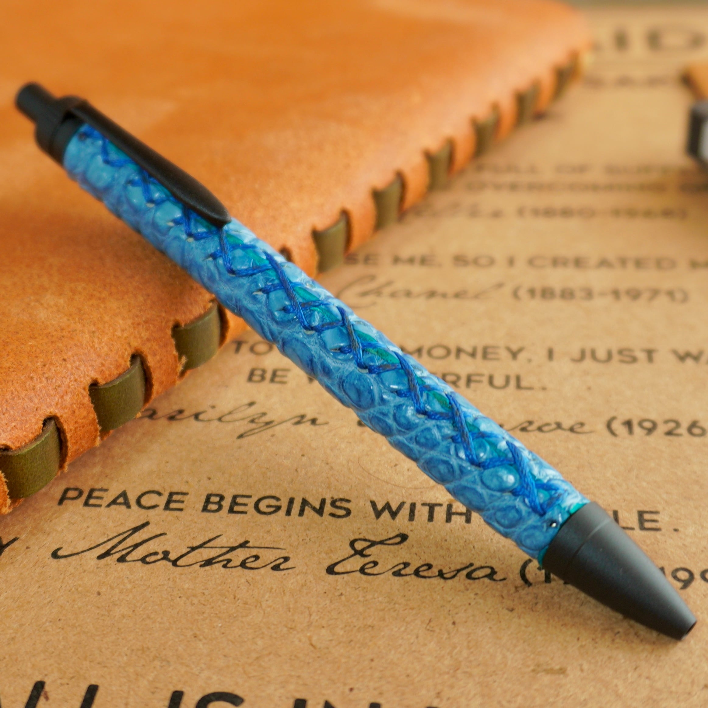 さらに、その希少なポロサスに日本ならではの藍染めを施した珍しい革軸ペンになります。