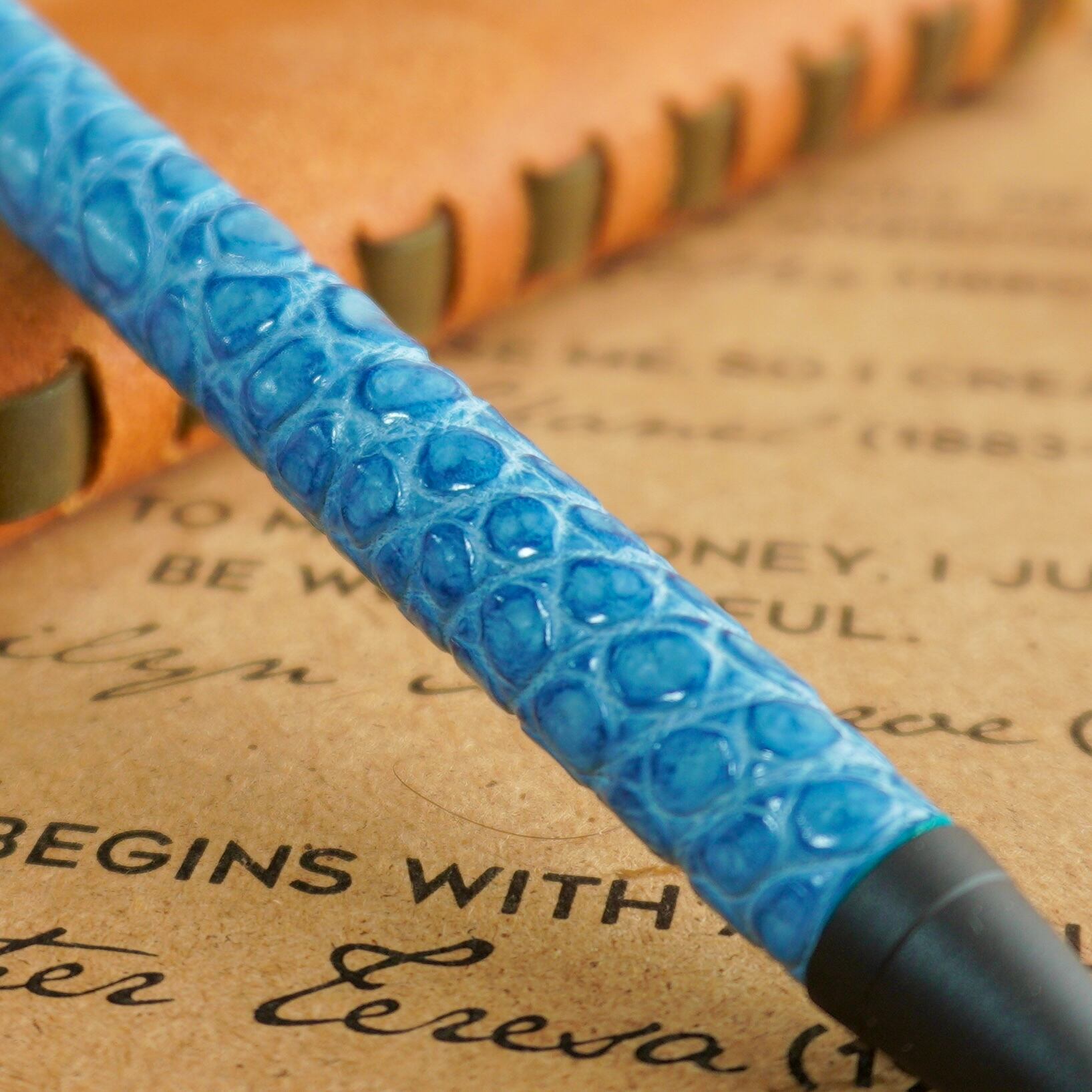革軸ペン【ポロサス(ワニ革)】薄藍染