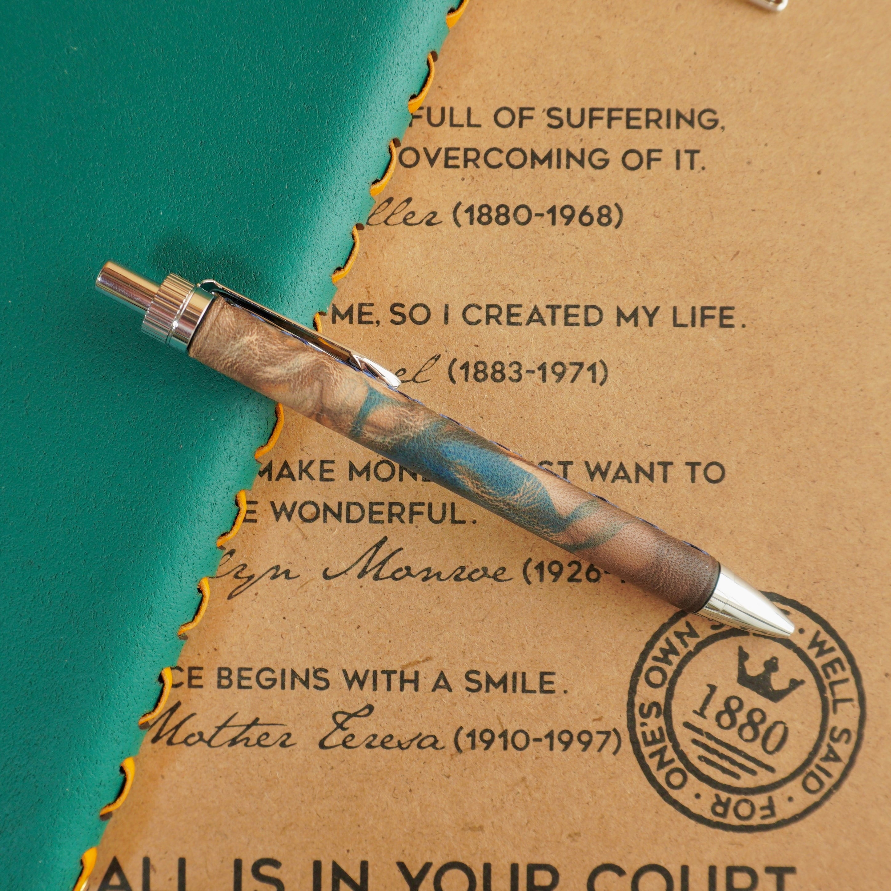 【世界に誇れる一品を…】をコンセプトに掲げ、作り手である革のソムリエが自らの足で捜しまわり入手した、厳選皮革のみで仕立てる唯一無二の筆記用具。