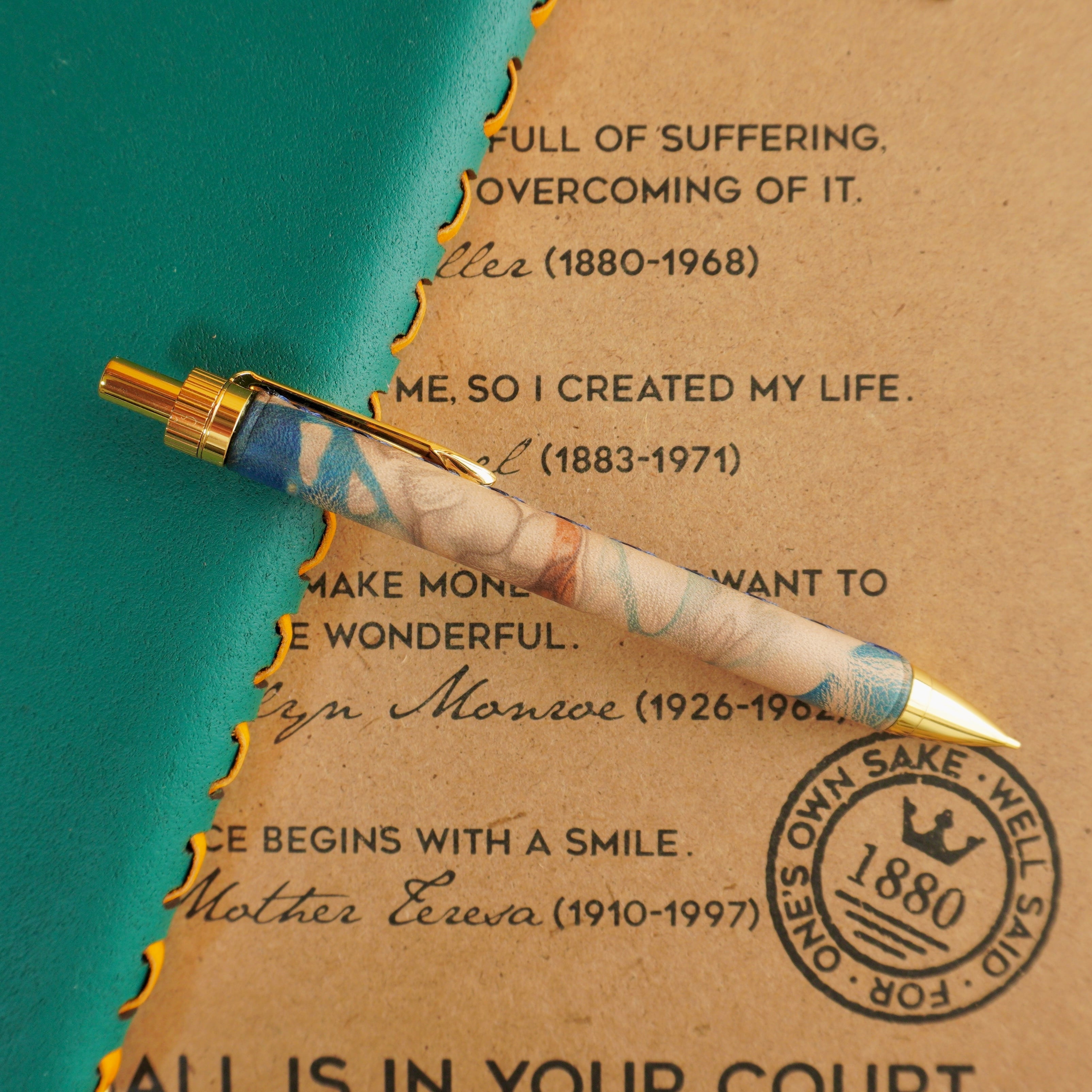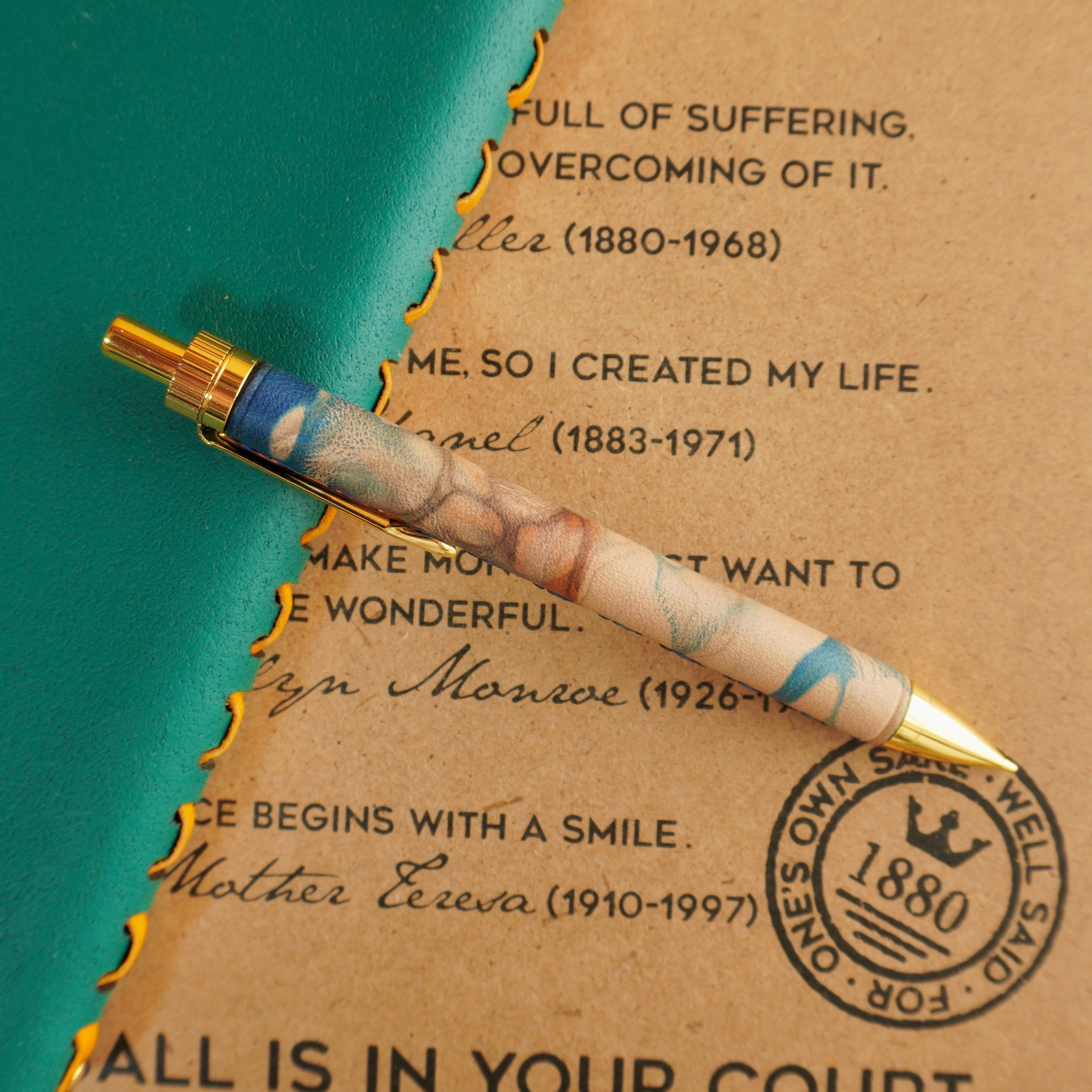 泥藍染めレザー(牛革)の革軸ペン。