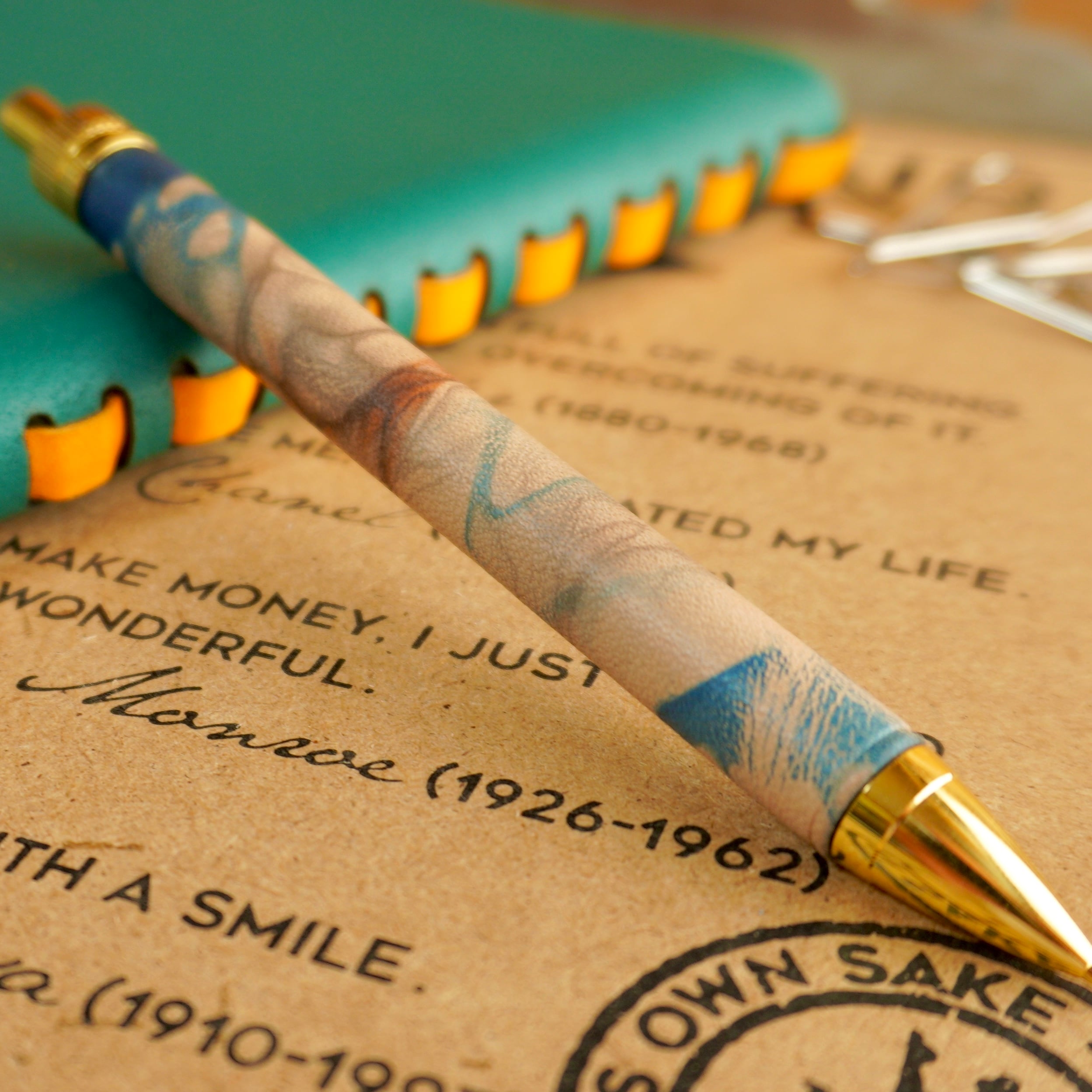 C.泥藍染めレザー【牛革】革軸ペン
