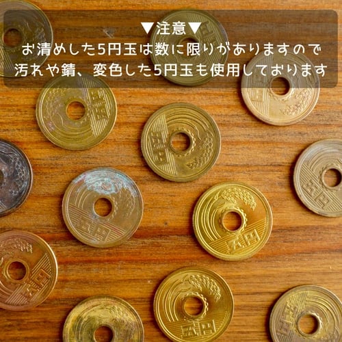 本物の5円硬貨を使用しております。そのため使用による劣化や汚れが付いている場合があります。