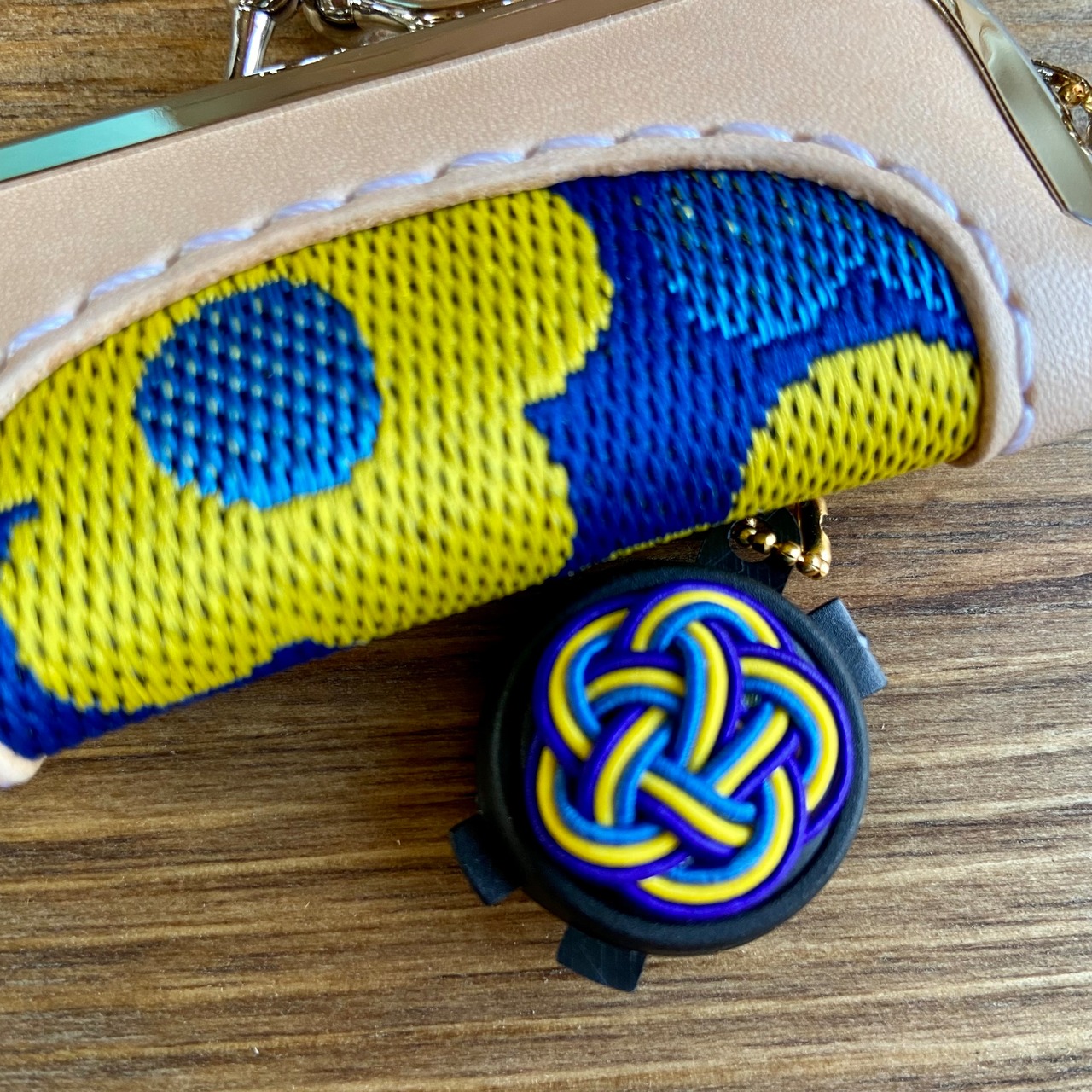 国産姫路レザー、畳縁、水引、がま口、印鑑と、全てが日本の文化を象徴する、モノづくりにこだわった作品です。