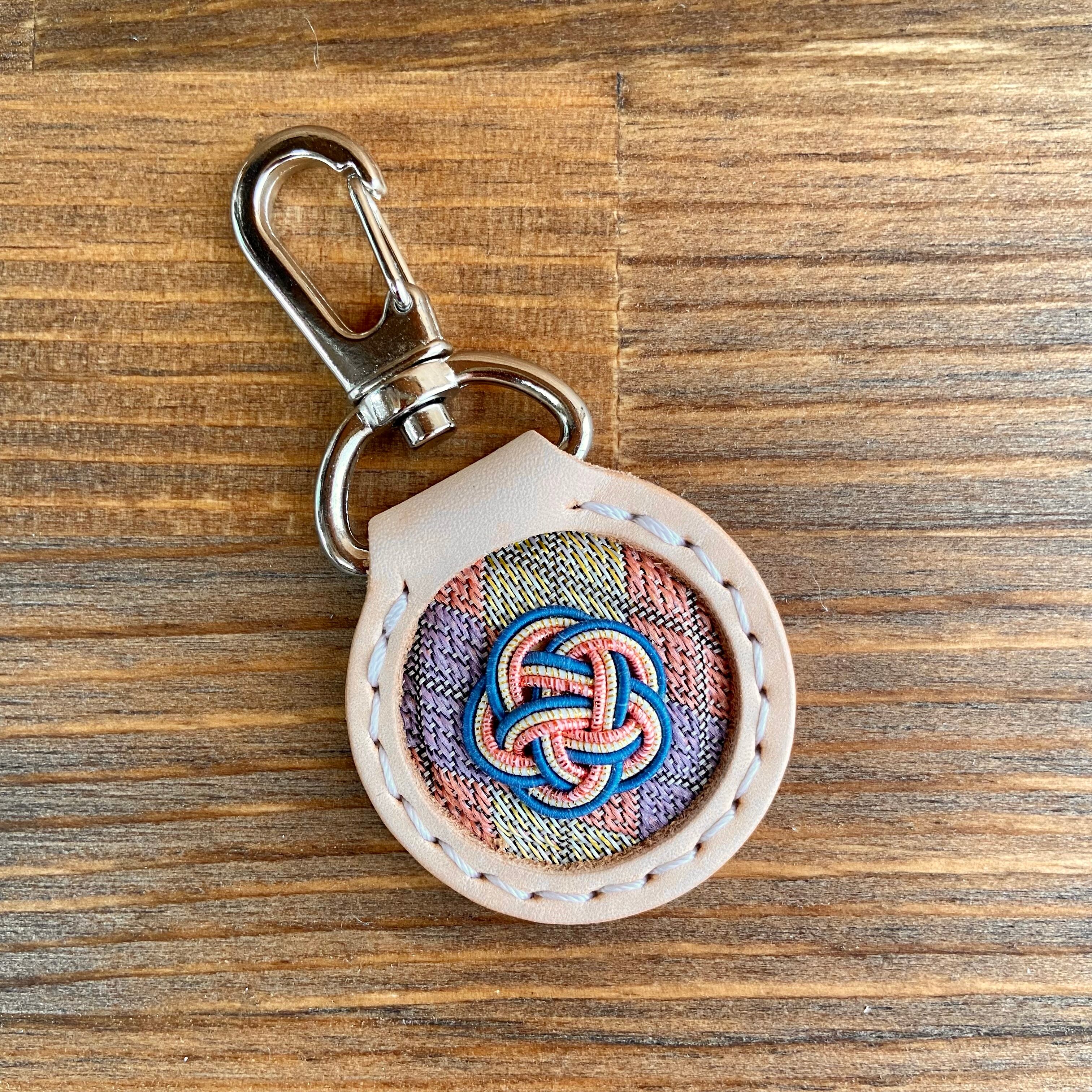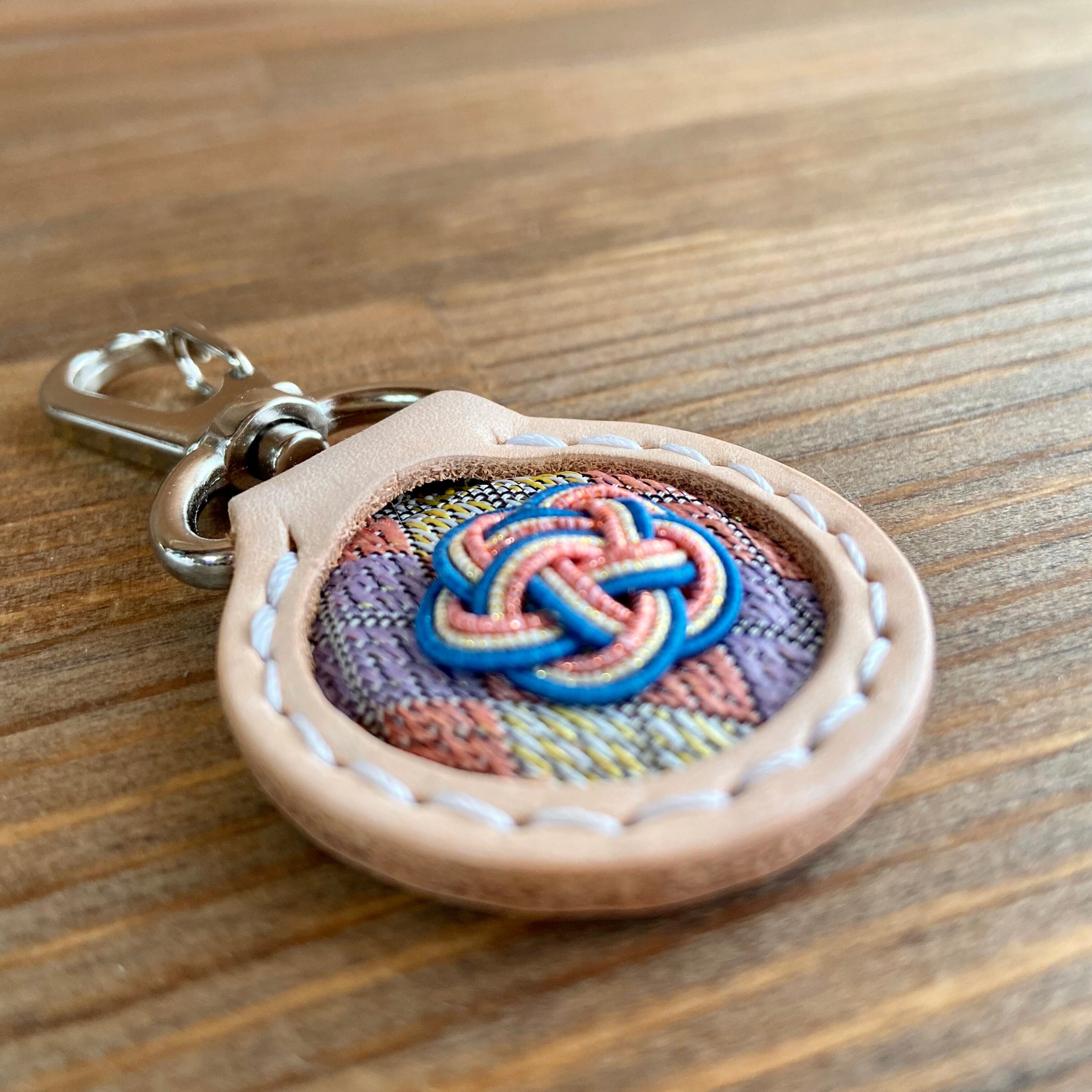 キーホルダー(丸型)【姫路レザー×畳縁×水引】No.3