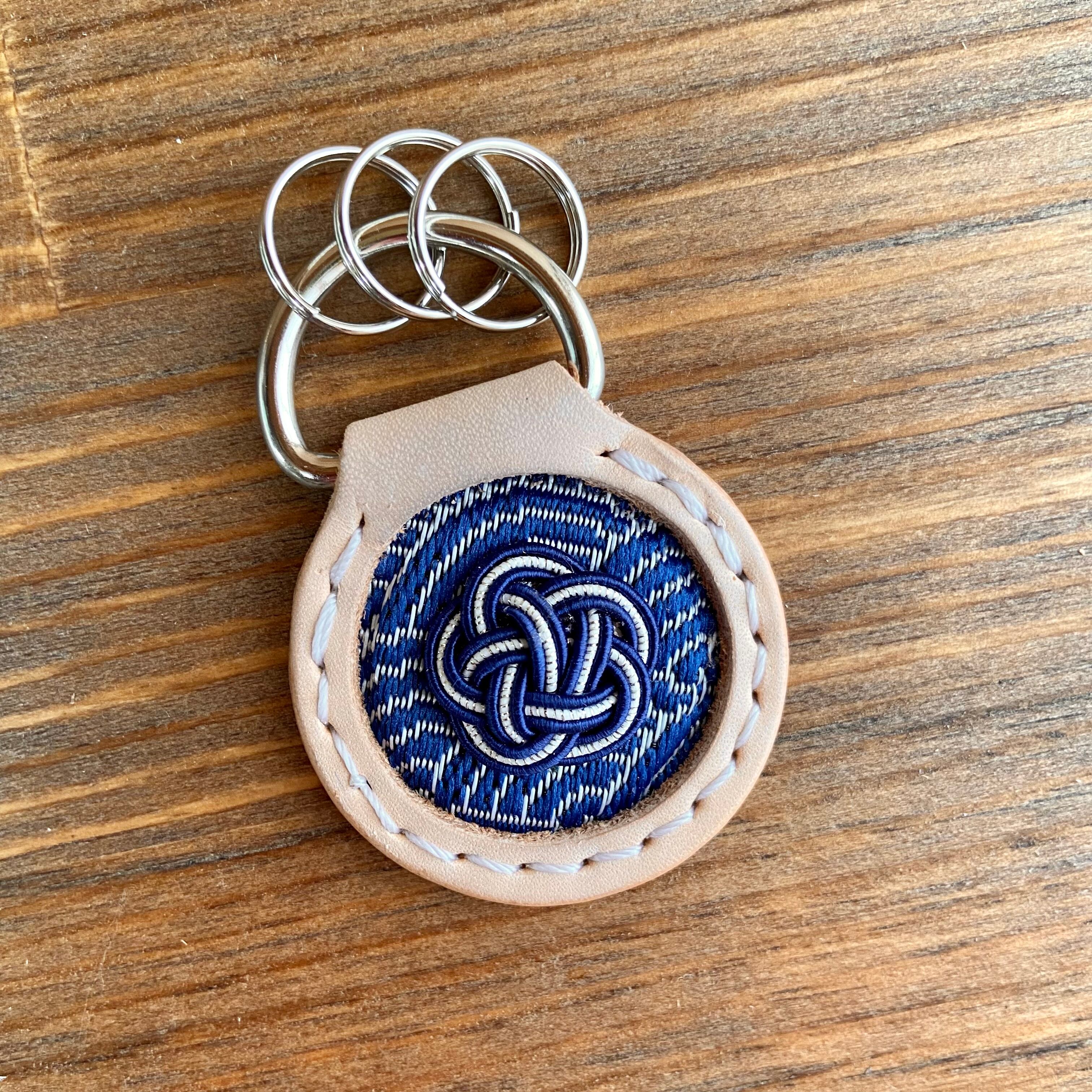 キーホルダー(丸型)【姫路レザー×畳縁×水引】No.6