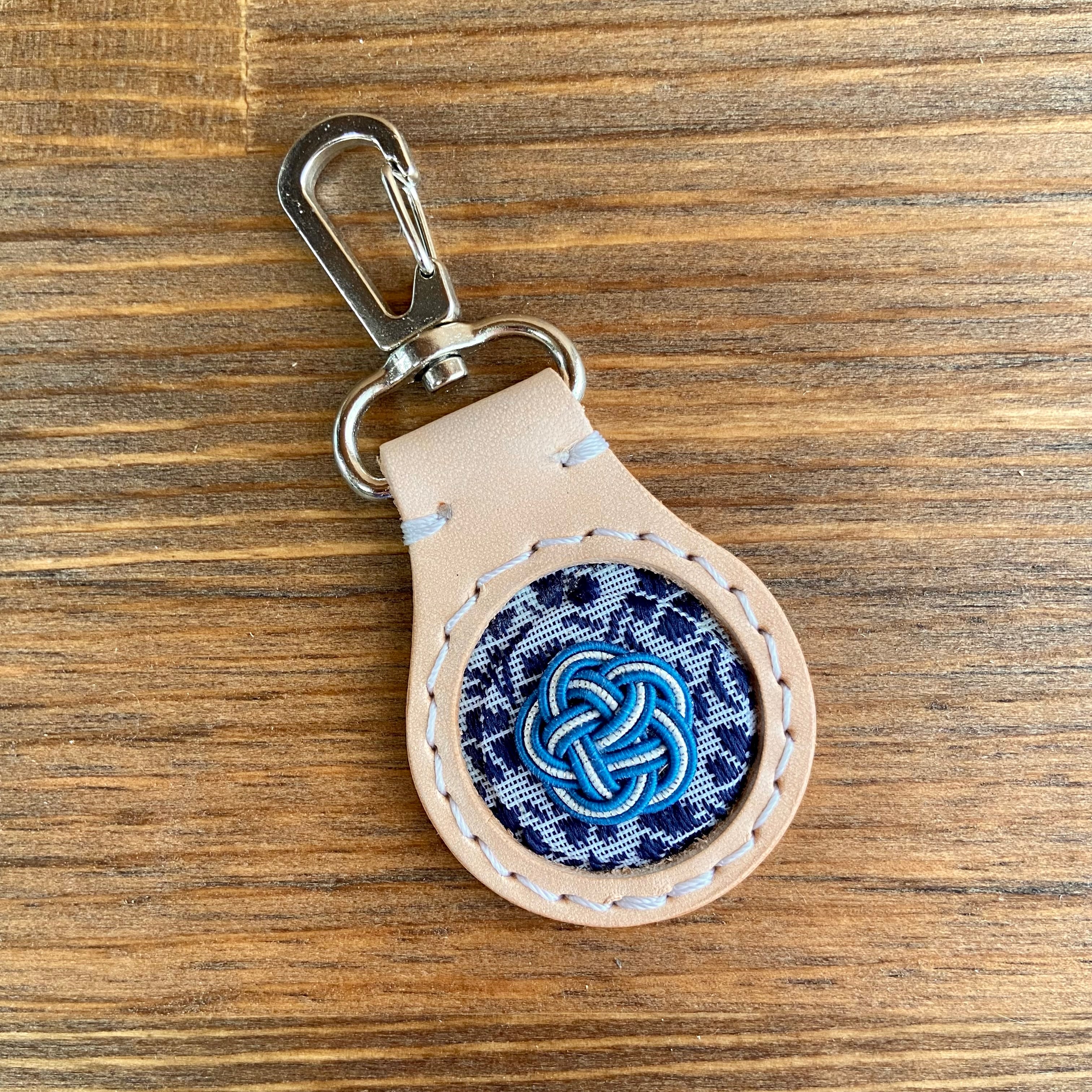 キーホルダー(雫型)【姫路レザー×畳縁×水引】No.10
