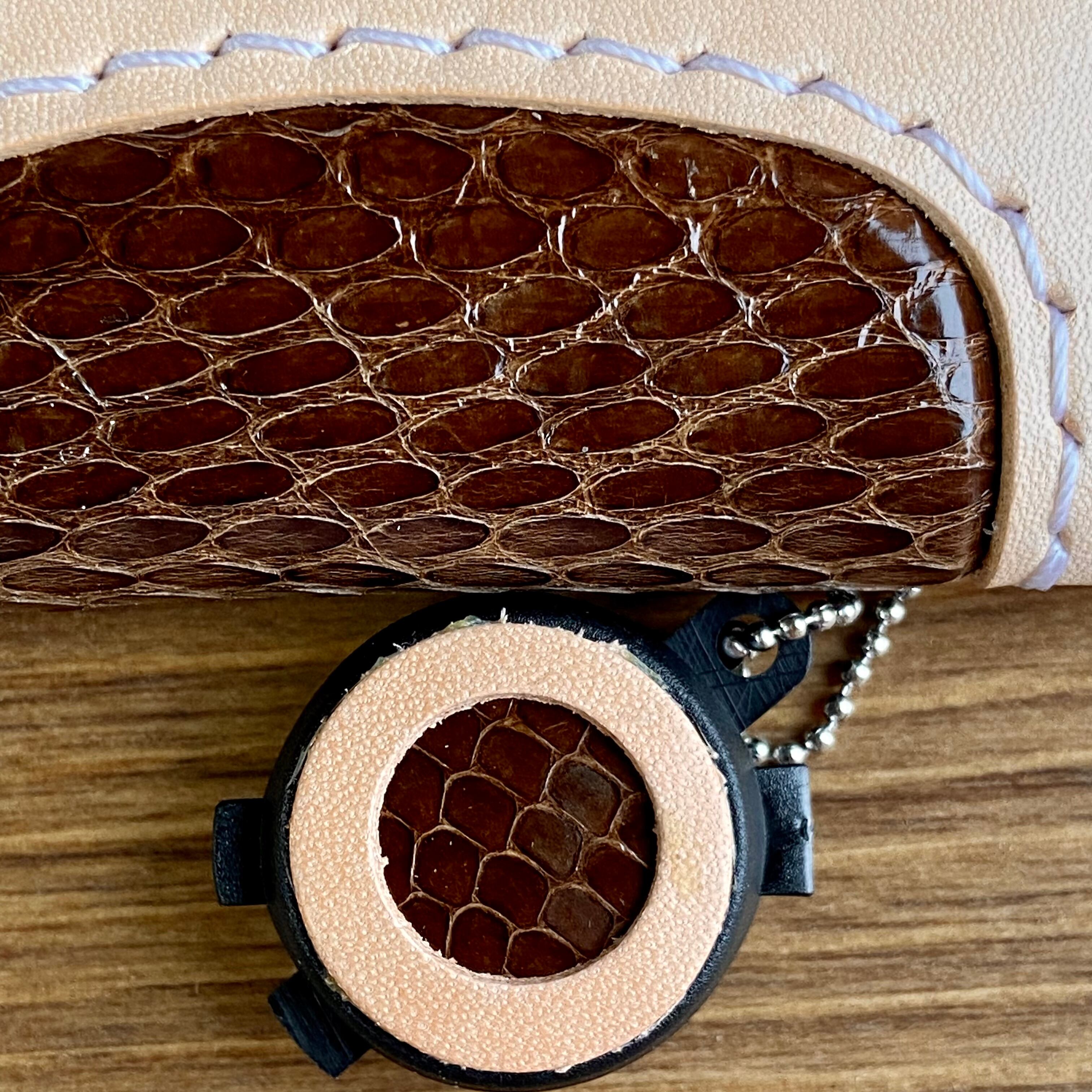 【姫路レザー×ヘビ革】印鑑ケース(朱肉付)No.101