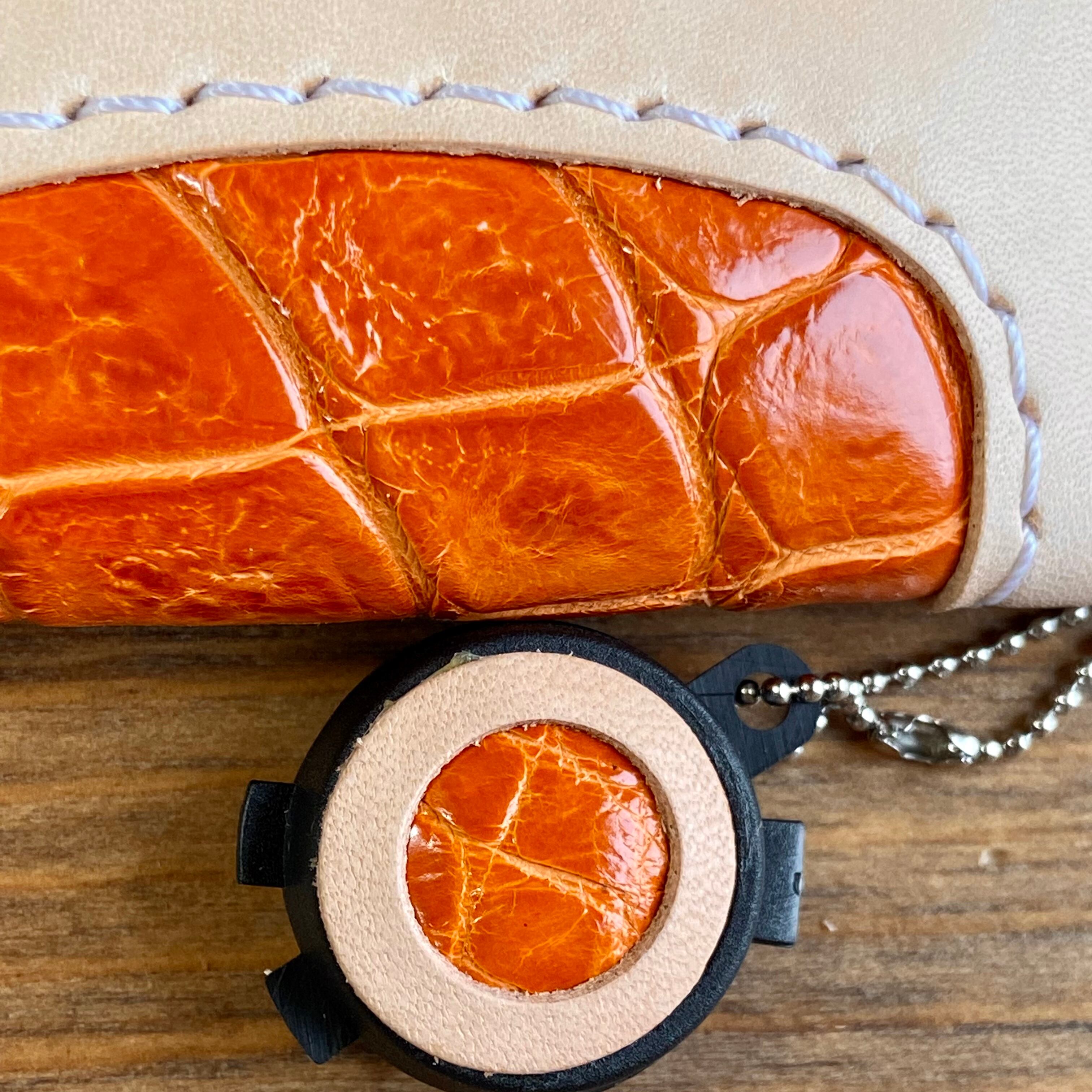 国産姫路レザー、ワニ革の印鑑ケース。