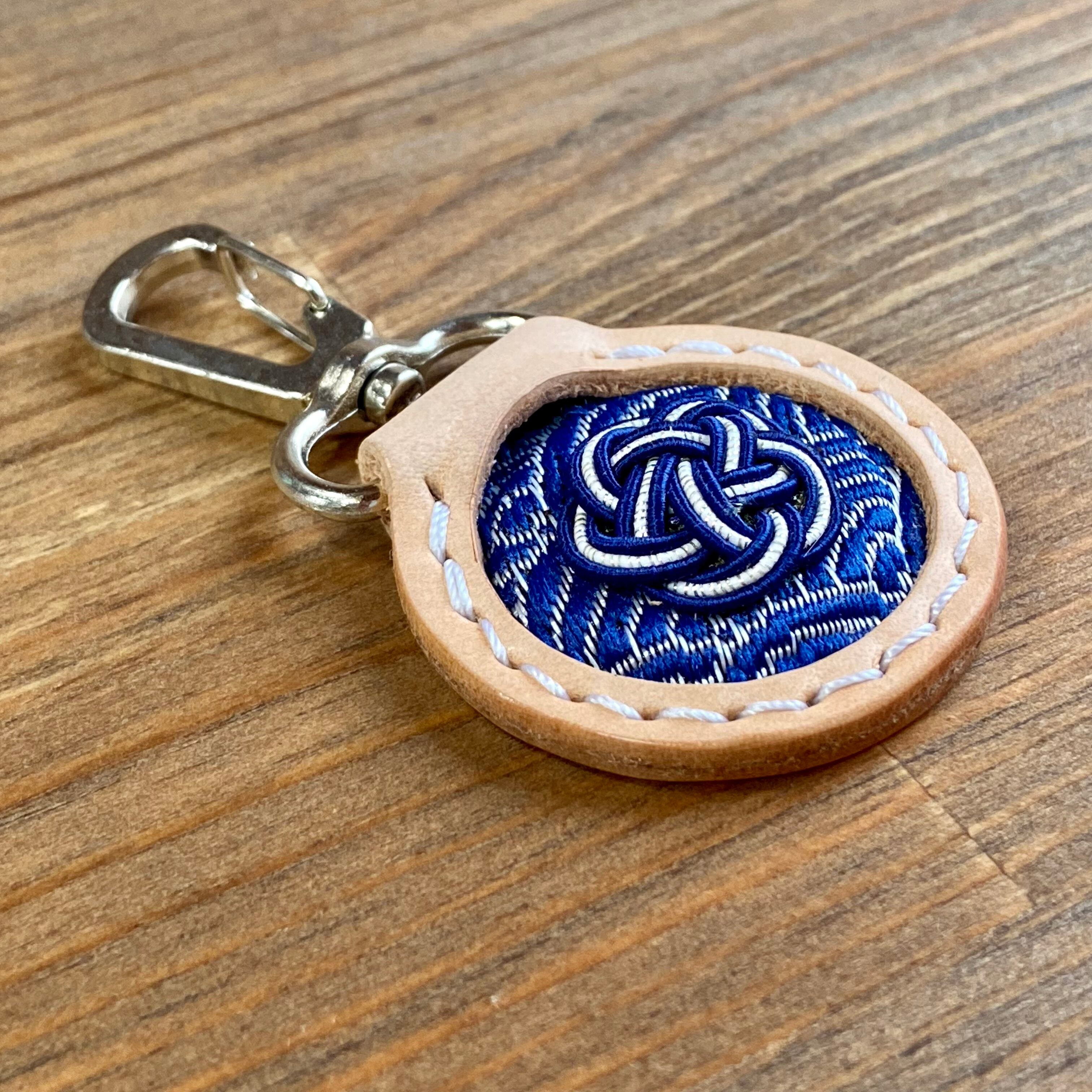 キーホルダー(丸型)【姫路レザー×畳縁×水引】No.22