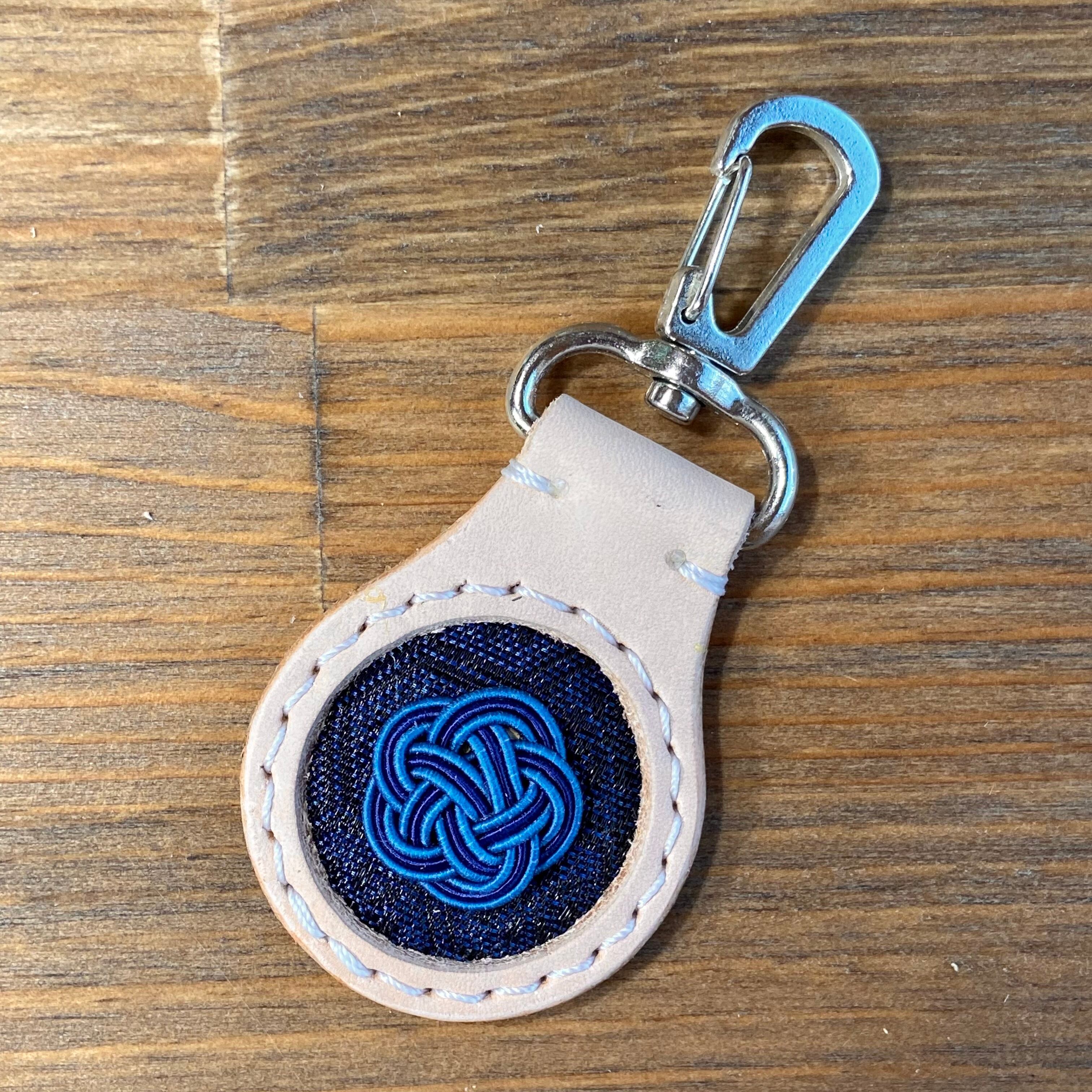 キーホルダー(雫型)【姫路レザー×畳縁×水引】No.43