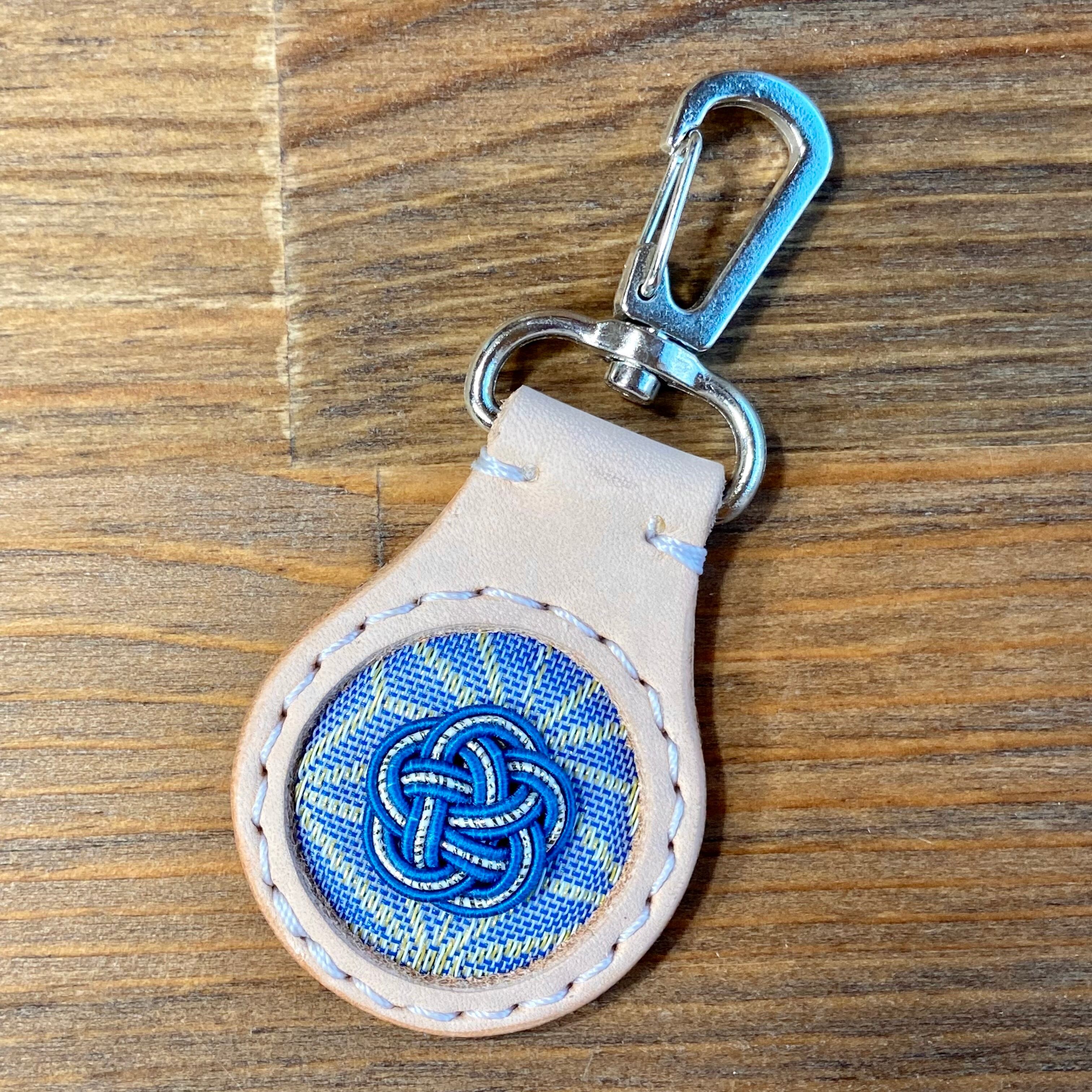 キーホルダー(雫型)【姫路レザー×畳縁×水引】No.44