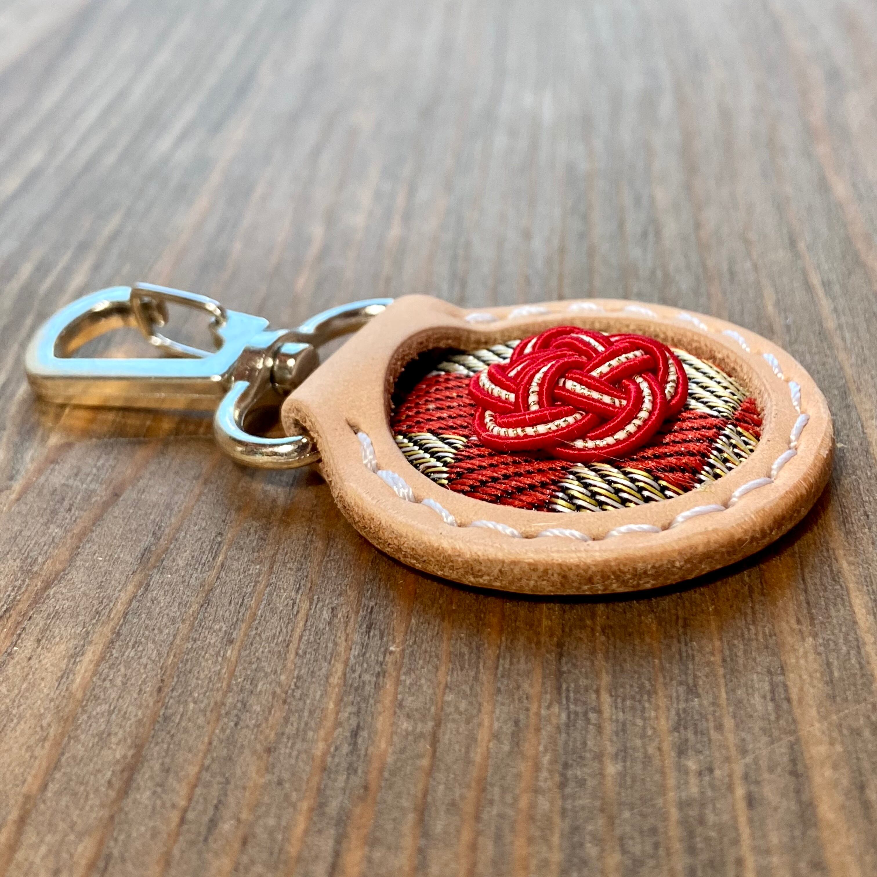 キーホルダー(丸型)【姫路レザー×畳縁×水引】No.50