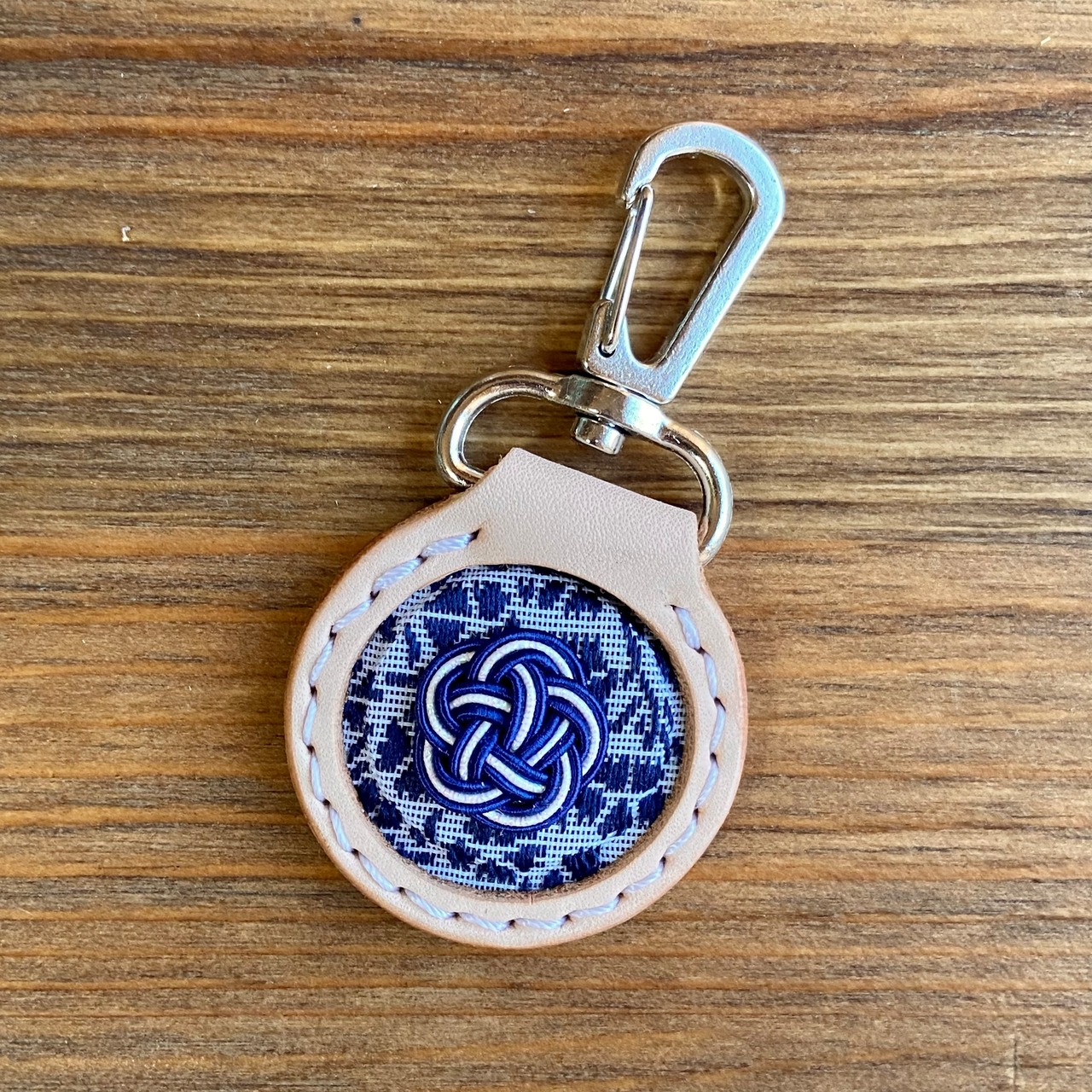 キーホルダー(丸型)【姫路レザー×畳縁×水引】No.53