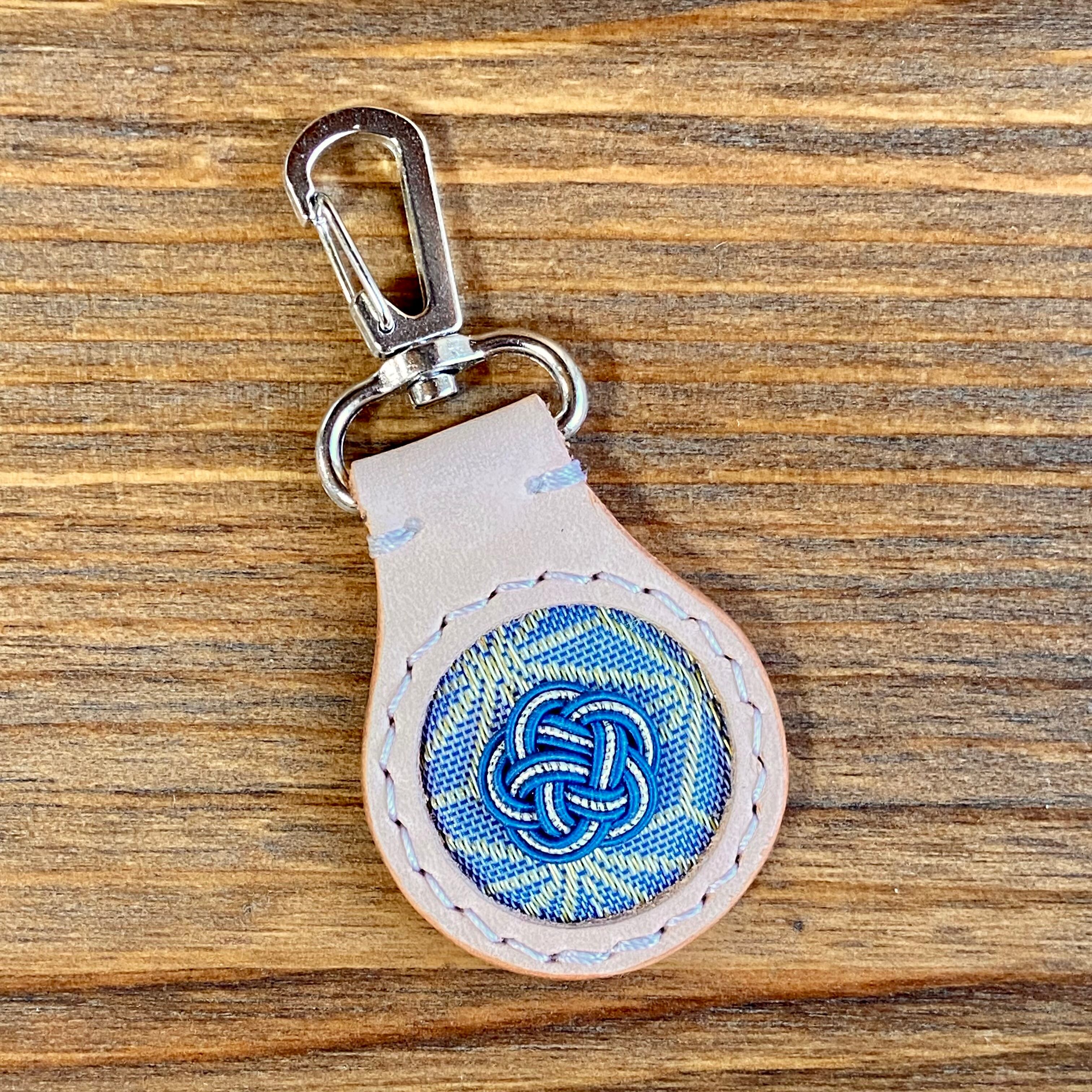 キーホルダー(雫型)【姫路レザー×畳縁×水引】No.65