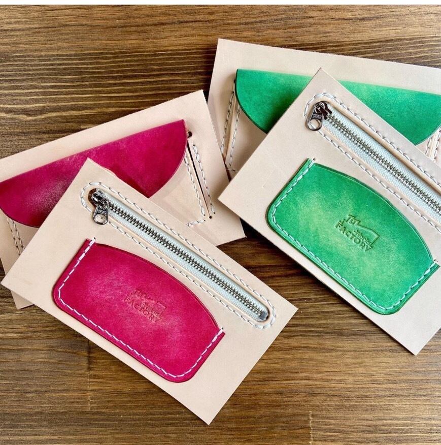 牛革ヌメ×泥染め革(写真④緑の部分を泥染めに変更)