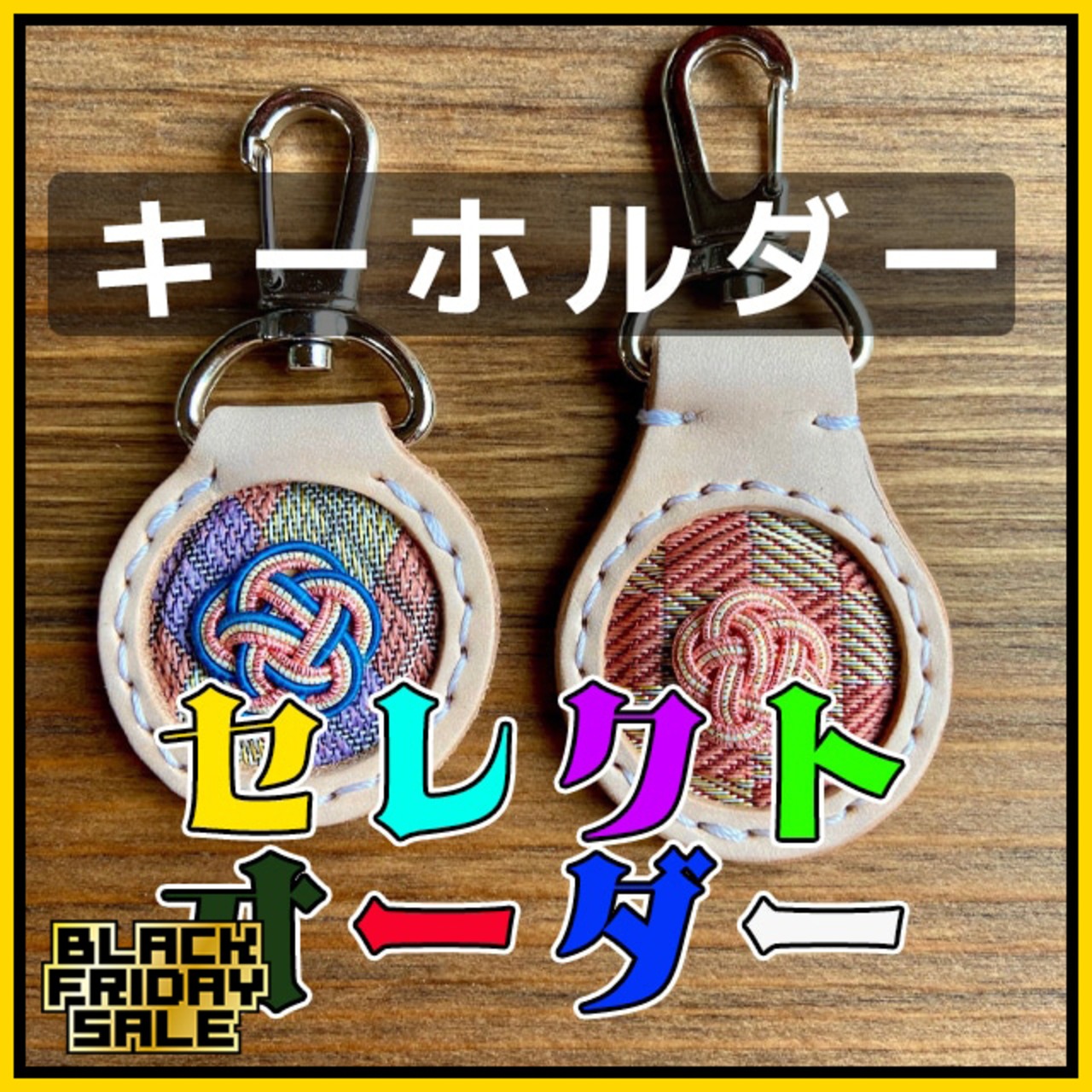 ★BLACK FRIDAY★セレクトオーダー【姫路レザー×畳縁×水引】キーホルダー